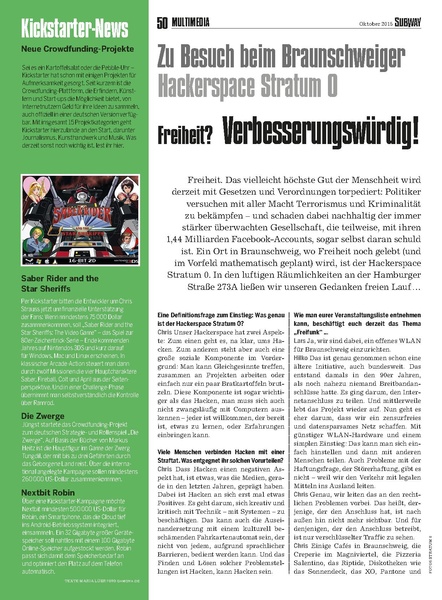 | Beschreibung | Ein Interview über Stratum 0 im SUBWAY-Magazin |